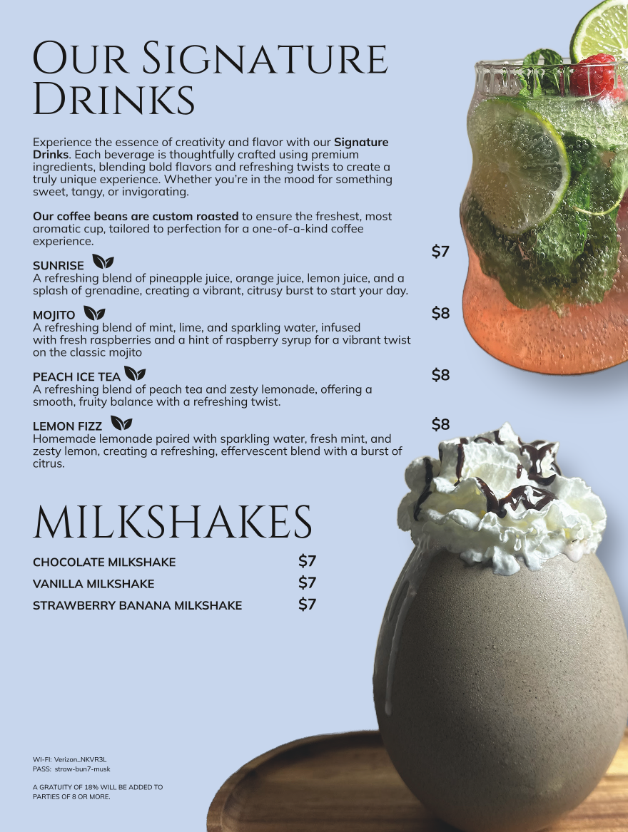 Smooth, rich soups such as the Creamy Pumpkin or nourishing Lentil Soup fit seamlessly with the intimate, cozy setting, making any visit feel like a gentle pause. For sweeter moments, freshly made Syrniki with Mango Maracuya or delicate macarons provide a quiet indulgence, while refreshing beverages—from citrusy juices to minty mojitos—add a lively yet understated touch.